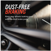 Advanced brake pad compounds produce less dust than OEM factory brake pads