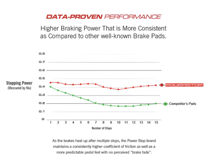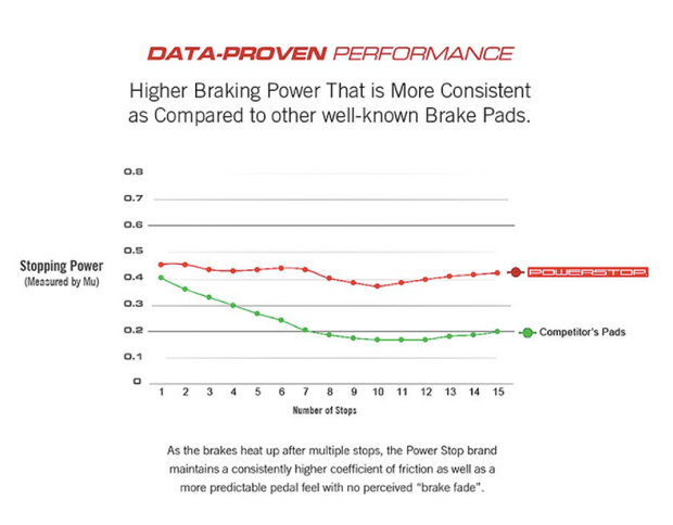 Reduced heat buildup eliminates brake fading that occurs when brake fluid reaches boiling temperature