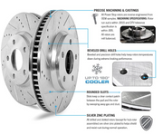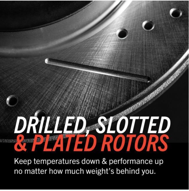 Includes rotors that are cross-drilled and slotted for more effective cooling under heavy use