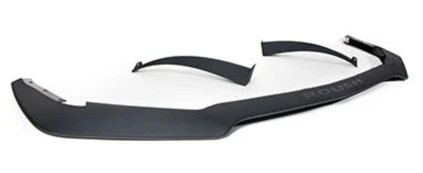 Designed utilizing techniques used in racing to improve aerodynamic efficiencies, the ROUSH Chin Spoiler separates airflow above and beneath the Mustang, working to reduce overall aero drag. The included market-exclusive Wheel Shrouds separate the turbulent wheel well airflow from the body's exterior slip stream. This ROUSH exclusive for the 2018-2023 Mustang performs so well in generating downforce, it includes stout supporting brackets to transfer the forces to the chassis. For best results, pair this kit with the Ford Performance Package under-engine tray/belly pan (suggested but not required).Each piece is made from high-strength TPO (thermal plastic olefin) with a black stipple finish for an OEM look and lasting durability. The plastic is molded with high-pressure injection, the same process used by OE automotive manufactures, which allows for impact resistance and durable flexibility, while remaining lightweight with low density.