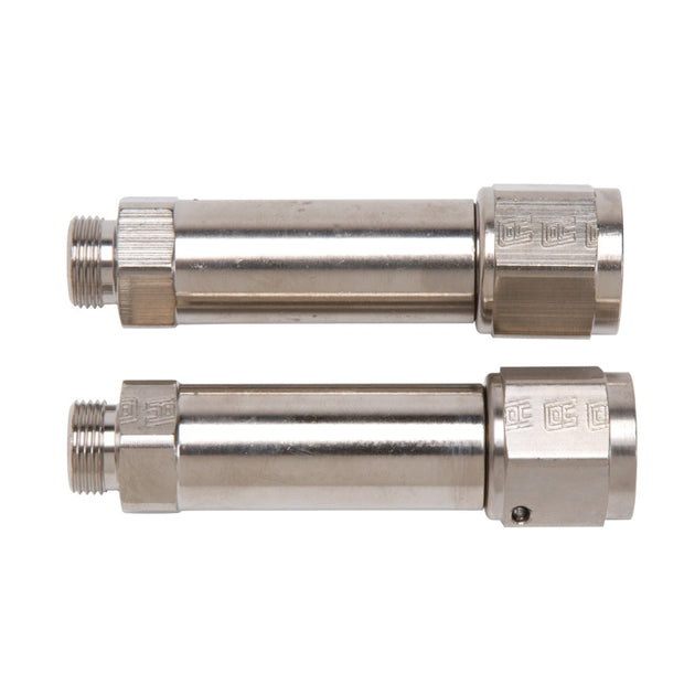 Russell's wide variety of lightweight aluminum adapter fittings allow for the connection of Russell hose ends to almost any component. Adapters are offered in standard thread, metric thread and pipe thread to fit most popular oil pumps, fuel pumps, fuel filters plus a variety of other common components. To compliment the looks of the hose installation, three finishes are available - ultra-bright Endura, traditional blue anodized or our new black anodized fittings.