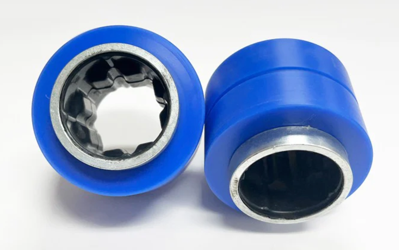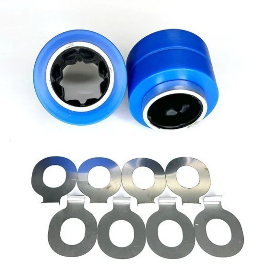 Updated bushings and shims for RV6 Compliance mounts. Hybrid solid nylon bushing with rubber interface. Solves issues with clunking and squeaking from RV6 compliance mounts.
