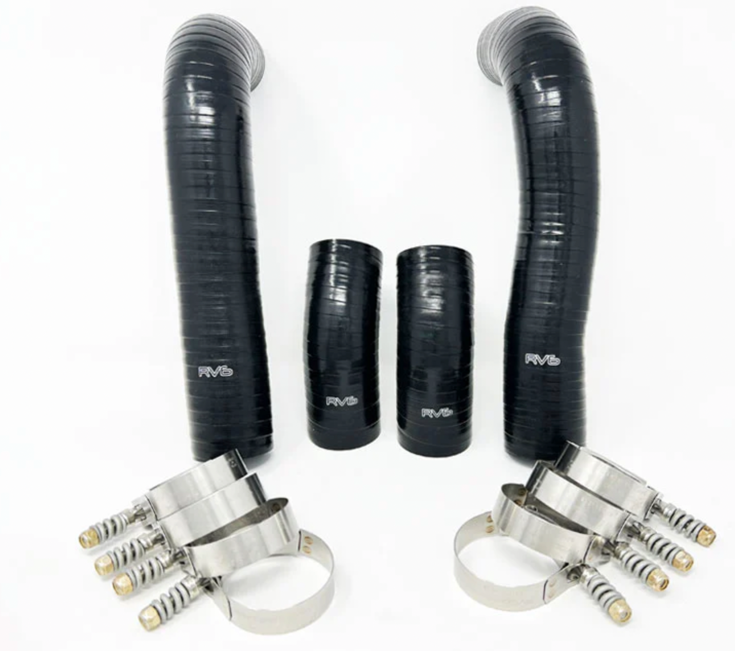 Features -Race proven to provide quicker crisper boost -Replaces all factory radiator style hoses and worm clamps -Rigid 4 ply Kevlar reinforced silicone couplers and hoses -Constant tension spring load T-Bolt clamps -Oil resistant Fluorosilicone liner -Designed with latest CMM/CAD modeling, guaranteed perfect fitment
