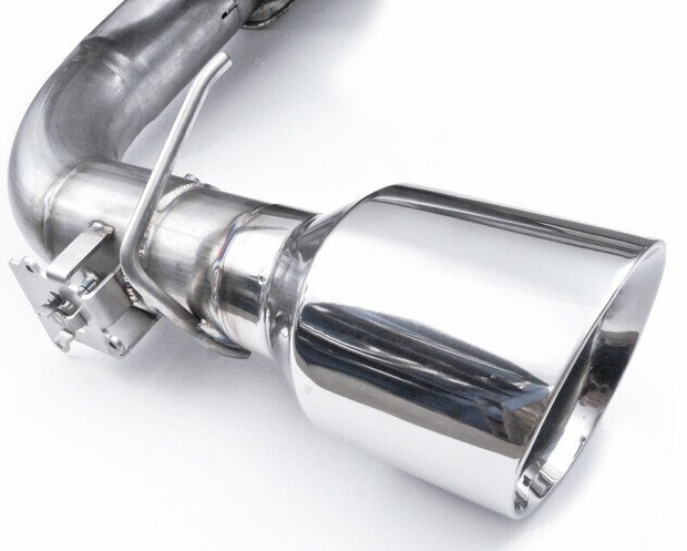 2016-18 Ford Focus RS 2.3L 304 SS 3" Catback Exhaust. Includes our vintage round muffler, chambered muffler and two 5" diameter mirror polished 304 SS slash cut conical double wall tips. Includes all hangers, clamps, and adapters for a swift and painless installation. Includes Stainless Work's replacement valve as pictured. Mates to the factory connection point and also connects to Stainless Works' Downpipe to make a full 3" system!