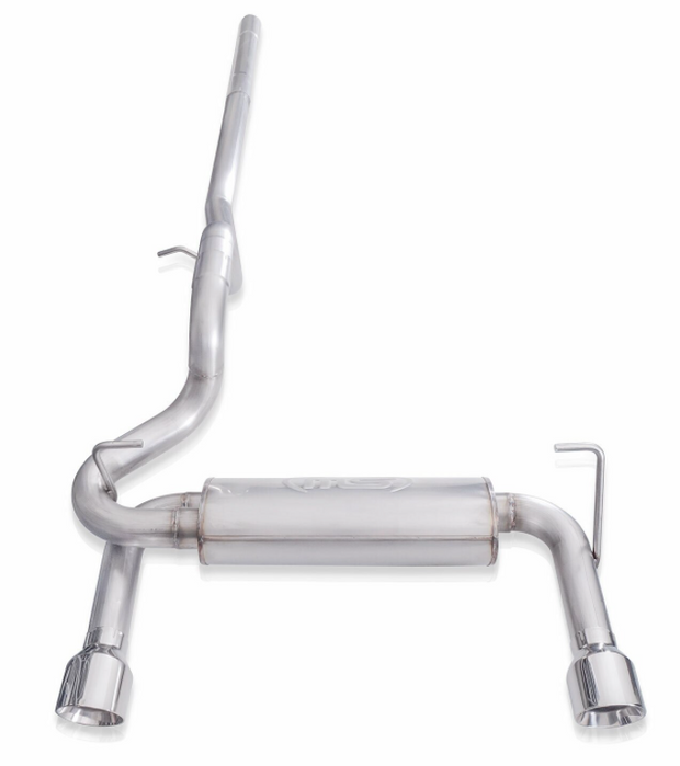 2019-20 Jeep Wrangler Catback Exhaust System. Expertly engineered and trail tested catback delivers that deep growl at low RPMs while trail riding. Optionally you can remove the axle back while rock climbing for maximum clearance. Includes resonator delete tube to remove mid resonator if your looking for a more aggressive sound.