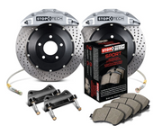 They feature fully forged calipers with patented stiffening bridges, patented 2-piece AeroRotors® for optimized cooling, braided stainless steel brake lines, performance brake pads, mounting brackets and all necessary hardware to complete the installation. StopTech® Big Brake Kits were the first Balanced Brake Upgrades® on the market, offering optimized brake bias to utilize all the traction available from all four tires.