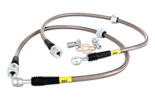 StopTech Big Brake Kits exceed stock performance in two key areas: First, larger rotors increase heat capacity, allowing a driver to brake harder stop-after-stop with reduced chance of fade. Second, stiffer calipers and stainless steel lines reduce system compliance, providing consistent pedal feel and confidence-inspiring responsiveness.