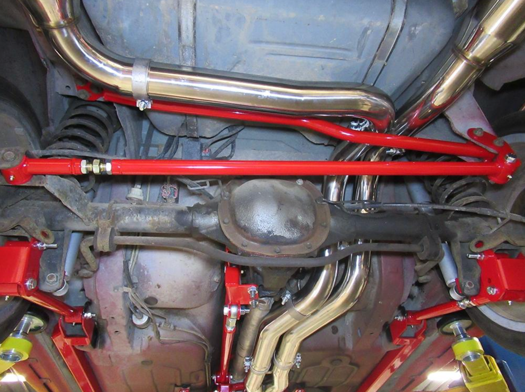 Suspension Engineering Relocation Kit replaces the panhard rod support bar, and relocates the panhard rod. Which, will allow enough room for our 3" true dual over the axle exhaust system.