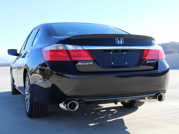 Add power, sound and taste to your Accord with this Takeda axle-back system. 2-1/4" to 1-3/4" mandrel bent, 304 stainless steel tubing improves exhaust flow to deliver up to +7 HP and +7 lbs. x ft. torque. 100% hand TIG-welded for long lasting strength and durability, this Takeda system incorporates dual, high-flow 304 stainless steel mufflers to maintain an aggressive tone. Dual, angle-cut black tips etched with the Takeda logo gives your Accord a track-style, custom appearance.