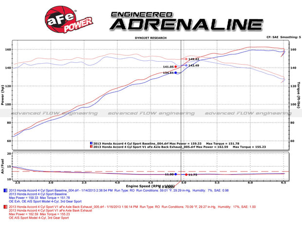 In testing, the cat-back exhaust system resulted in gains up to +7 horsepower and +7 lbs. x ft. of torque, as measured on our in-house dyno.