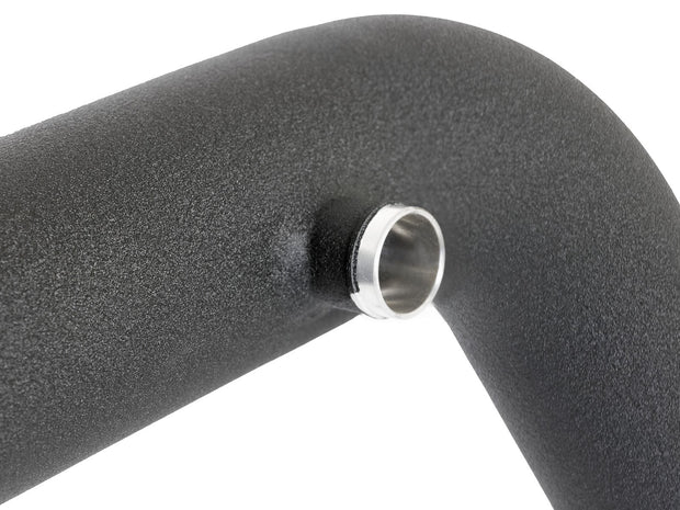 Two Piece 3" Mandrel-Bent Wrinkle-Black Powder-Coated Aluminum Intake Tube directs unrestricted airflow from the massive filter to the turbo for more horsepower and torque.
