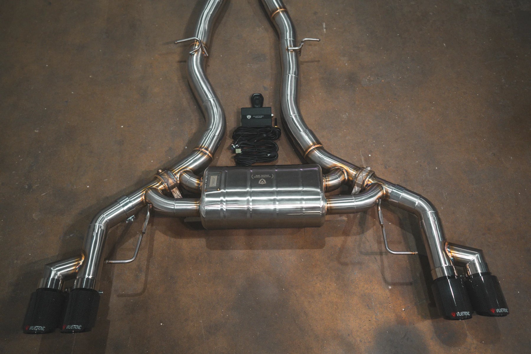At Valvetronic Designs, we believe in offering enthusiast the ultimate experience. That is why in our pursuit to develop engineer and deliver the worlds most enjoyable sound experience for the G01 platform, we have resulted in one of our finest systems yet. Utilizing many developments from our other systems, the maximum piping diameter is used so that you get the most raw and unfiltered sound experience when the valves are opened. When the valves are open, this system is as raw as it comes. Tons of turbospool, aggressive overrun, and an unfiltered aggressive sound that sings all the way from idle to red line. Fortunately, with the valves closed, the exhaust is extremely docile and perfect for a daily use. Over 25 dB of sound difference from valves open to valves closed means that you're enjoy enjoyment of your M40i will be unwavering as this exhaust system allows you to have that much needed flexibility. Its time to let that B58 sing. At Valvetronic Designs, we never compromise, and neither should you when it comes to choosing the best exhaust system for your M40i.