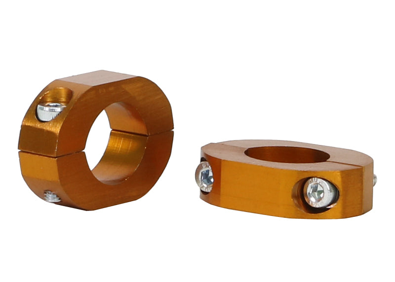 To suit 20mm diameter sway bars - the DIY (Do It Yourself) alloy lateral locking system can be utilized on both factory and more importantly aftermarket sway bars. The locks are easily installed on car with no need to remove the sway bar to install. They are mounted directly next to the sway bar mounting points and prevent shifting or sideways movement of the sway bar under lateral (cornering) loads. This results in improved sway bar effectiveness whilst preventing fouling of the sway bar on near by chassis and steering components.